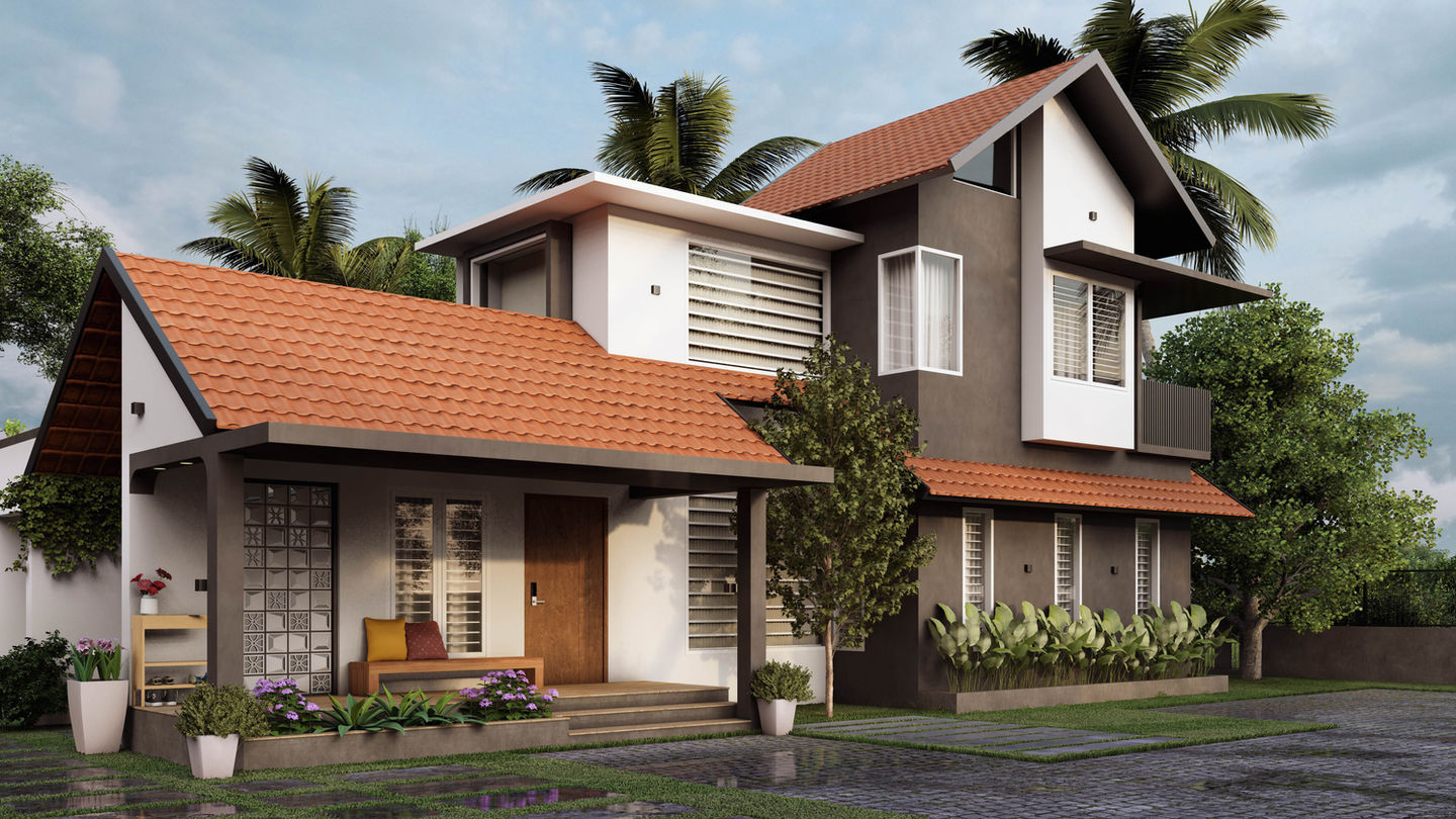 The Saji Residence in Perikalloor, Wayanad, combines modern elegance with traditional design across 1542 sq. ft. Featuring a terracotta-tiled pitched roof, the home offers 2 bedrooms on the ground floor, an open kitchen, dining area, patio, and courtyard. The first floor adds another bedroom, balcony, and open terrace, blending comfort and scenic views. Its minimalist design and warm material palette create a luxurious yet serene family retreat.